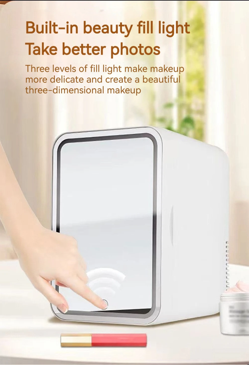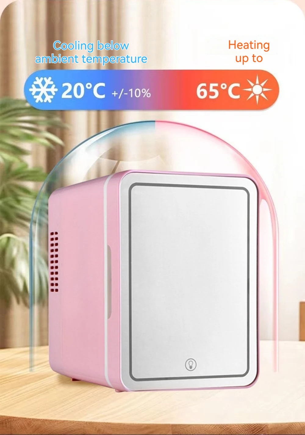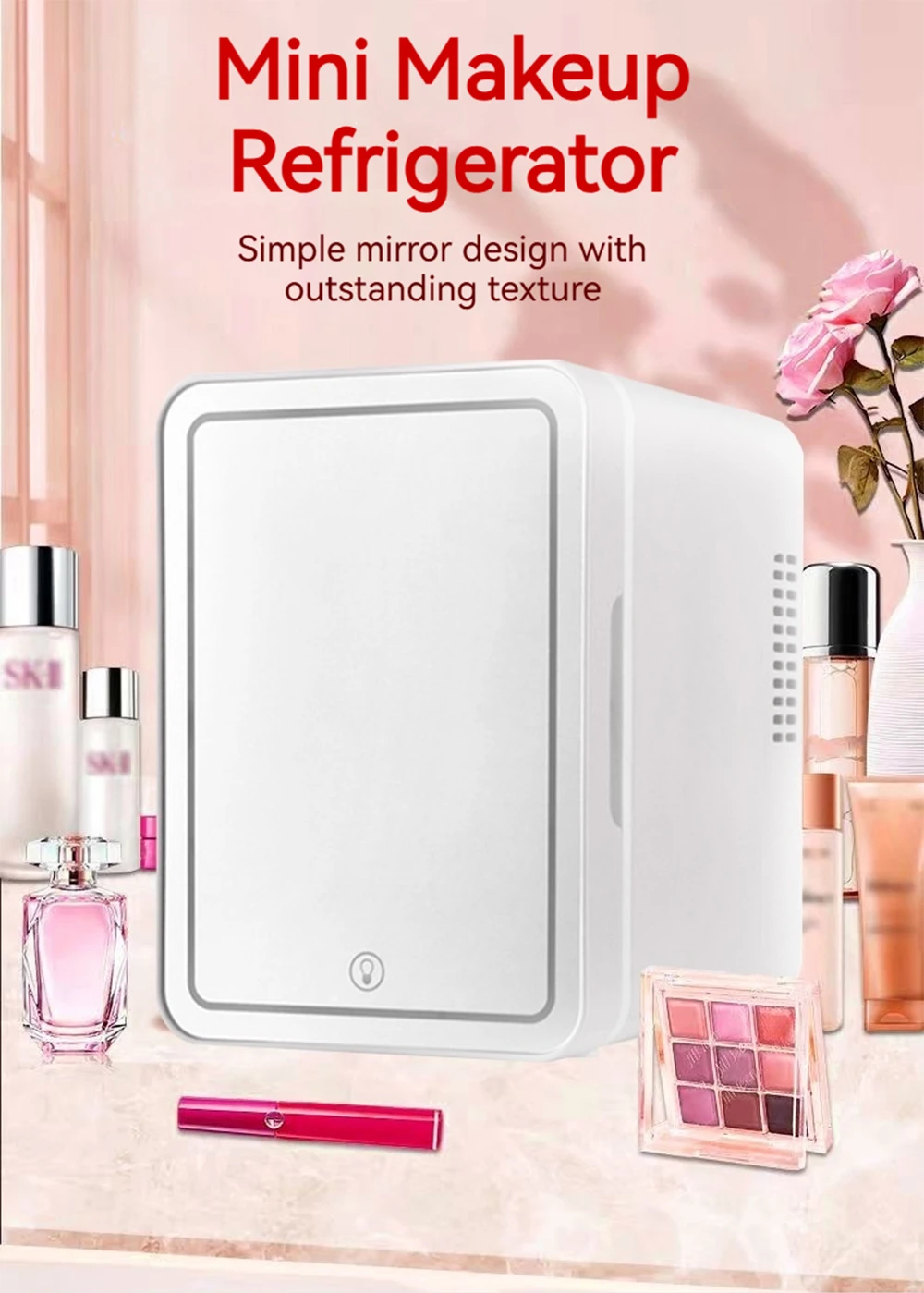 4L car mini beauty refrigerator, adjustable LED light mirror, small portable beauty refrigerator freezer for household cars.