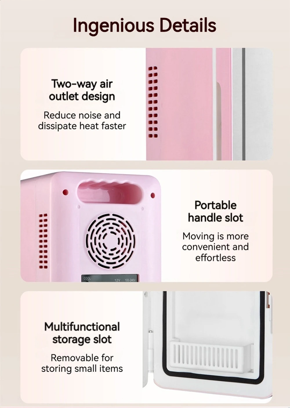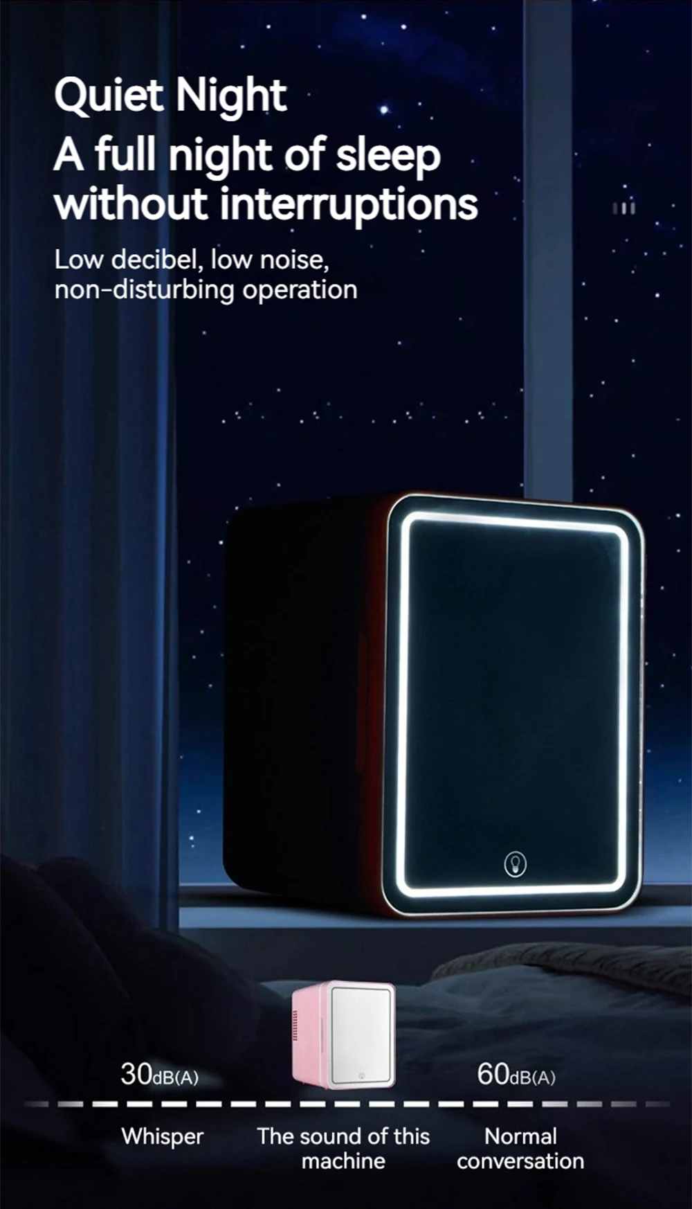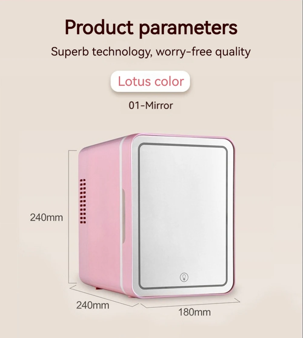 4L car mini beauty refrigerator, adjustable LED light mirror, small portable beauty refrigerator freezer for household cars.